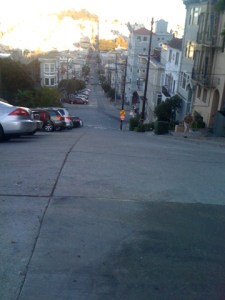 We passed the mile marker in about 12:45 – much too slow and we tried not to panic and run like madmen.